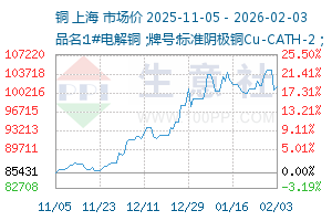 | 铜(BC) | 2603 | 90410 | 92570 | 89950 | -460 | 11627 | 5846 | 元/吨 | 2026-02-03 | 上海国际能源交易中心 |